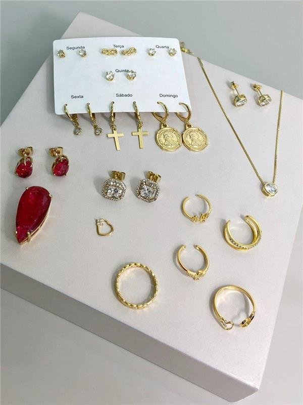 PEÇAS NO BANHO OURO 18KKIT INICIANTE ACOMPANHA 25 PEÇAS + 1 LIMPA JÓIAS + ESTOJO PRETO.